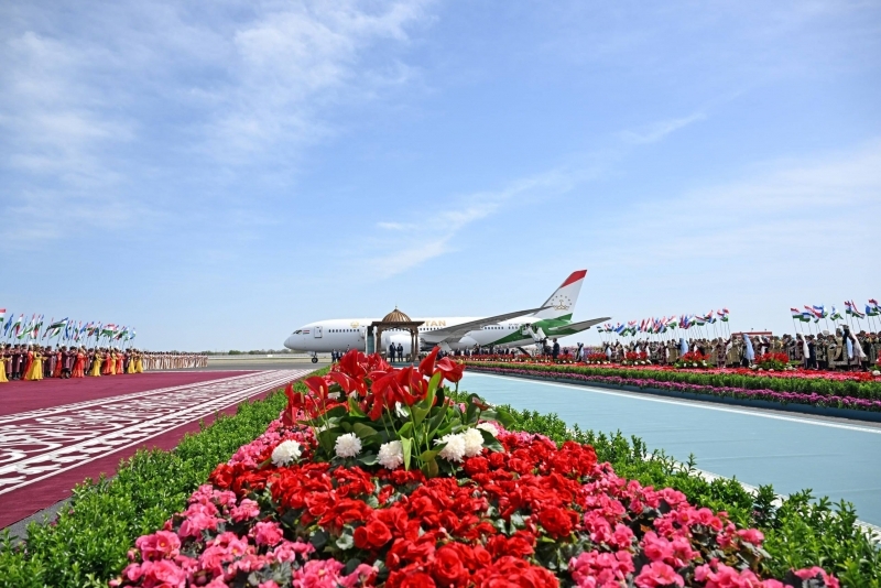 Тантанали кутиб олиш маросими бўлган. Олий мартабали меҳмон шарафига миллий қўшиқ ва рақслар ижро этилган.