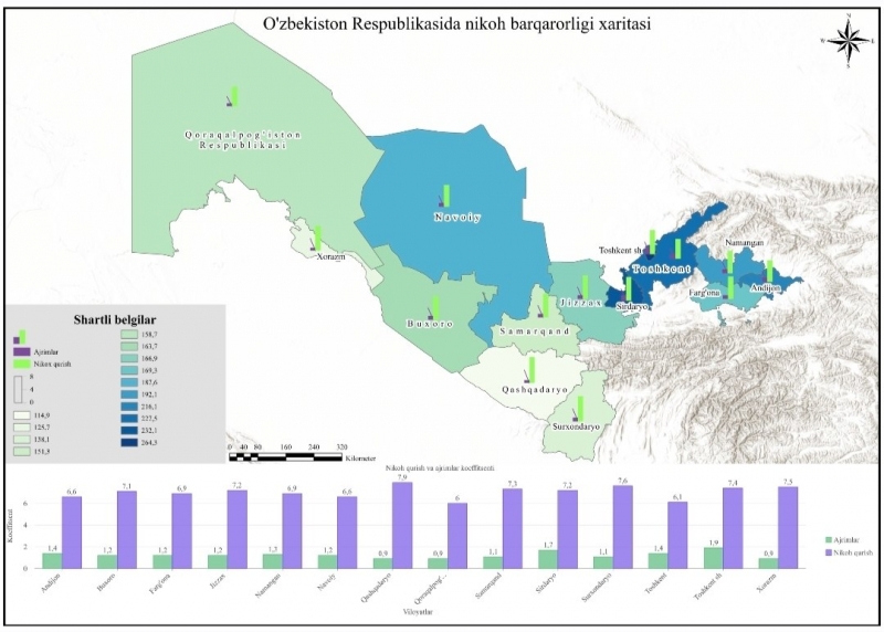Қайд этилишича, мазкур кўрсаткич халқаро миқёсда паст бўлиб, мамлакатда ажримлар даражаси кўплаб давлатларга нисбатан анча кам эканини кўрсатади. Жумладан, никоҳ барқарорлиги коэффициенти Молдовада – 642,7, Озарбайжонда – 431,9, Қозоғистонда – 328,2, Қирғизистонда эса – 289,6 промиллени ташкил этади. Бу рақамлар билан солиштирганда, Ўзбекистонда оила институти нисбатан барқарор экани намоён бўлади.